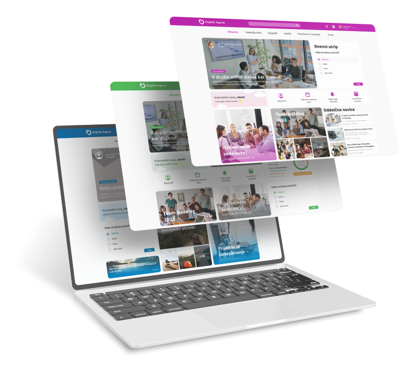 Pomembno je, da so vsi vaši sodelavci — ne glede na to, ali delajo v pisarni ali na terenu — obveščeni. Digital Agora je enostavna platforma za komunikacijo, ki zagotavlja, da vsi prejmejo zadnje informacije, s čimer med vašimi sodelavci ustvarja občutek enotnosti in pripadnosti.